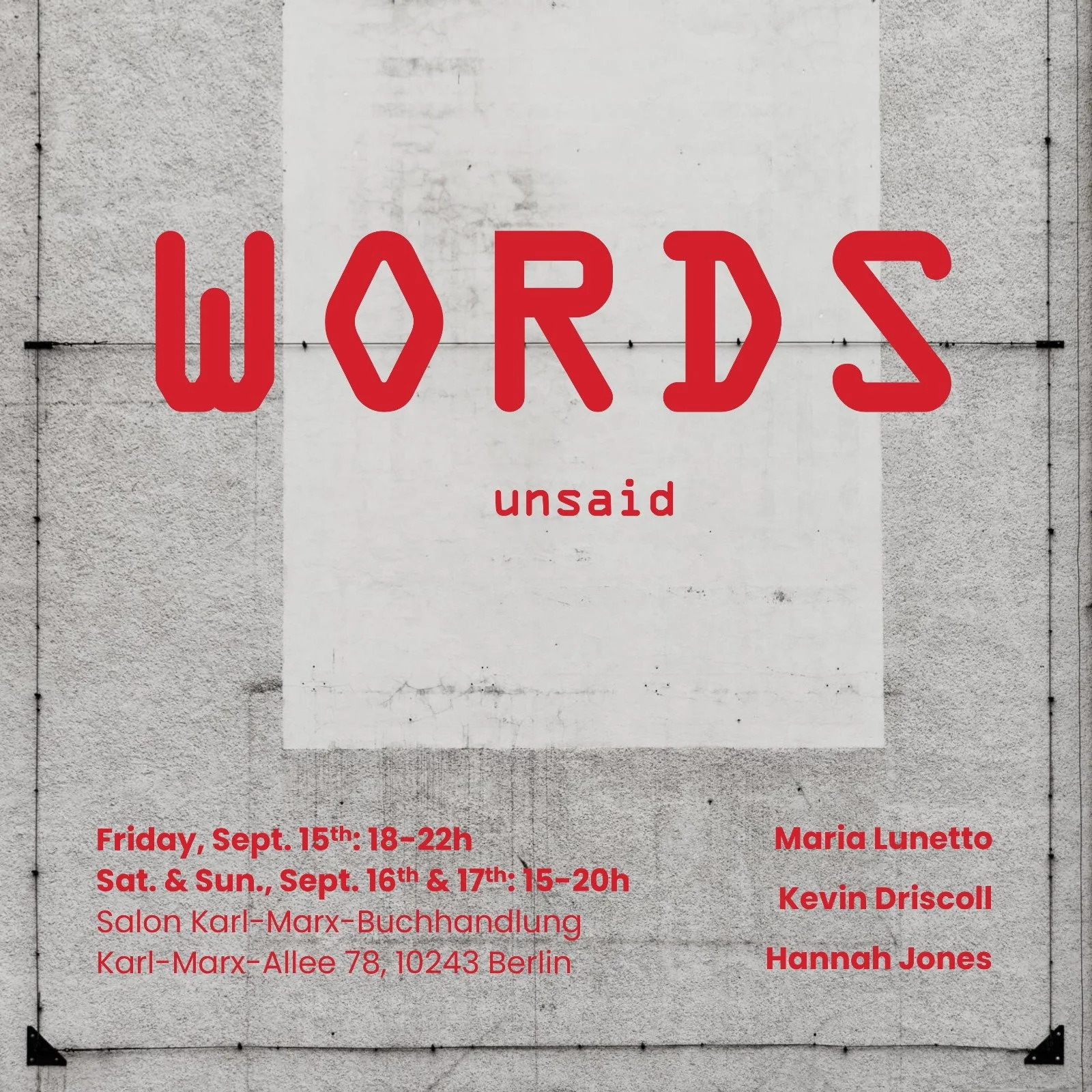 “Words unsaid” at Salon Karl-Marx Buchhandlung, Karl-Marx-Allee 78, 10243 Berlin
